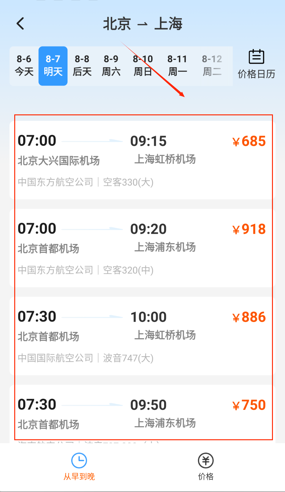1、下载安装后打开应用,首页输入出发地、目的地及出行日期,系统自动展示当日航班列表与价格对比。