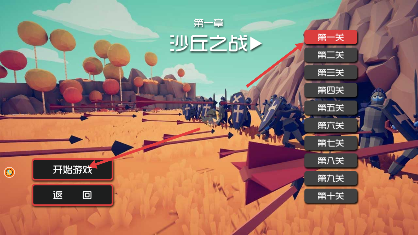 1、选择【第一关】,点击【开始游戏】,进入第一章【沙丘之战】的战斗准备阶段,开启策略对战。