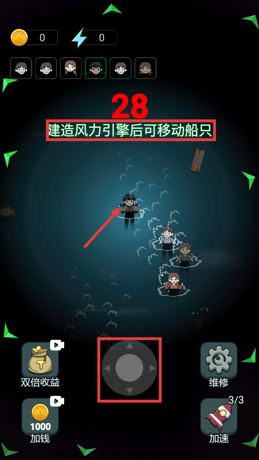 1、需完成【建造风力引擎】解锁船只移动功能,利用界面按钮推进流程,为后续探索与资源收集奠基。