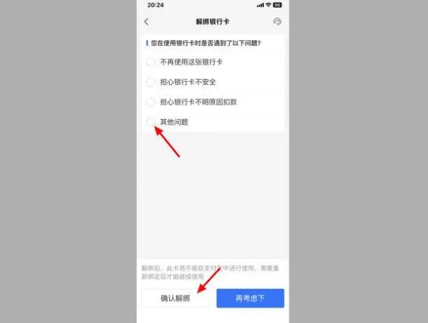 5、在解绑银行卡界面,选择解绑的原因,点击【确认解绑】,这样就取消银行卡绑定成功。