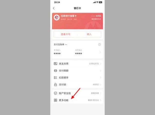3、进入要解绑银行卡的详情界面,点击最下方的【更多功能】选项。