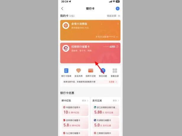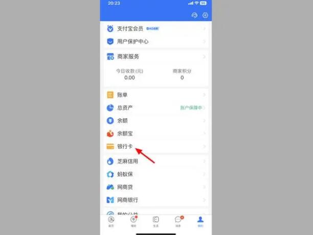 1、在支付宝我的界面,点击【银行卡】。