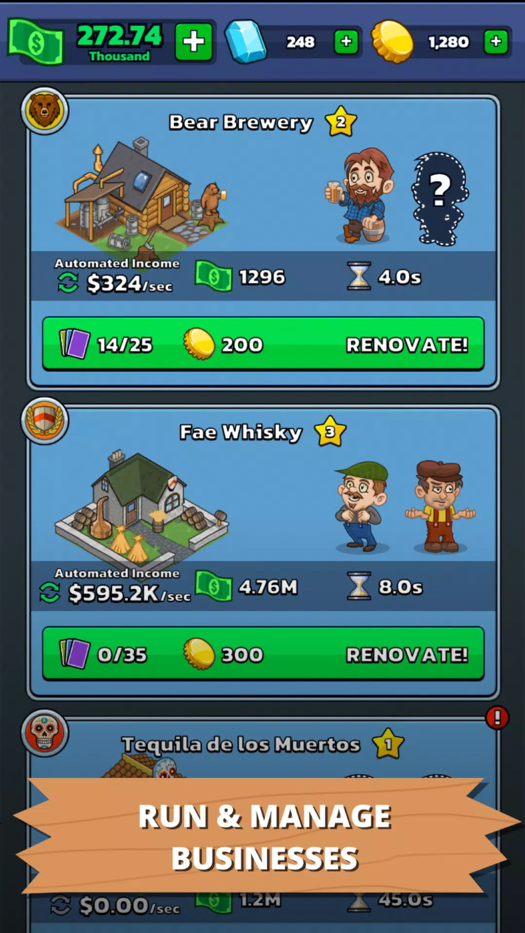 1、玩家可以使用金币来解锁和升级酒厂的设备,增加酒的产量,扩大玩家的领地。