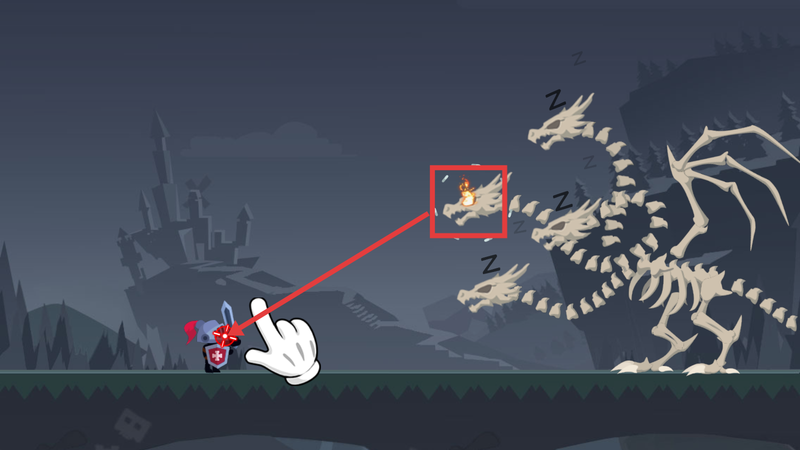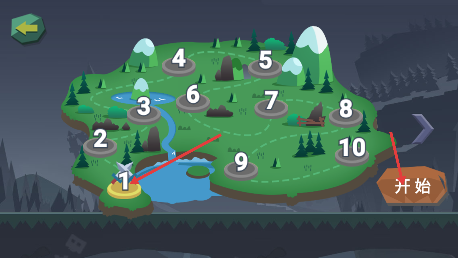 1、选择标有【1】的关卡,点击【开始】按钮,进入首关冒险,操纵skeletal-dragon(骷髅龙)与骑士展开对战。