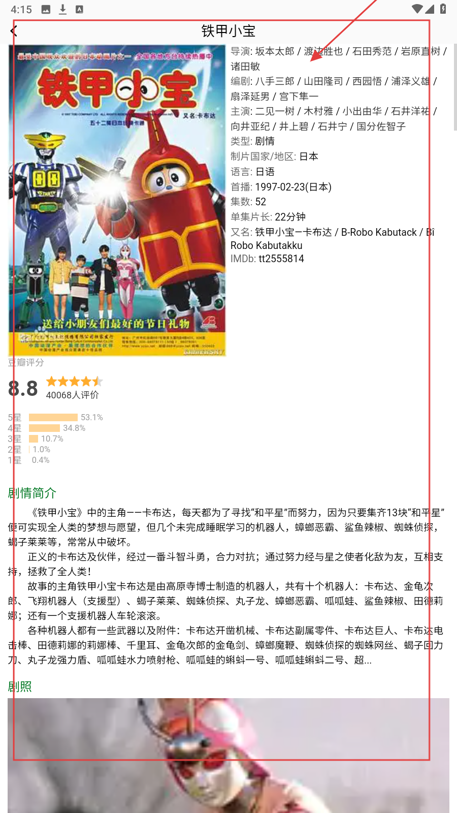 3、选感兴趣短剧如《铁甲小宝》,查看评分、剧情简介了解内容。