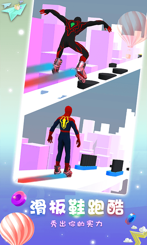 《蜘蛛超人滑板鞋》游戏中玩家们将会控制着自己的蜘蛛超人去使用着滑板鞋进行着好玩的冒险的游戏,在这里有着很多的有趣且极具挑战的关卡等着你来征服,你需要使用着道具来帮助自己很好的进行跑酷,在游戏中一步步的进行着跑酷吧,享受着跑酷带来的刺激,是一款不错的游戏,快来下载吧。