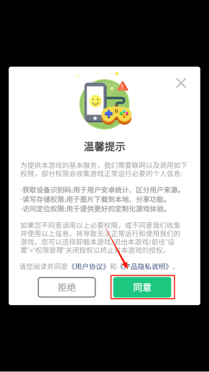 4、确认广告隐私声明:阅读广告及隐私声明后,点击“同意”即可正式进入游戏。