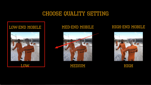 2、根据设备性能选择LOW、MEDIUM或HIGH画质。