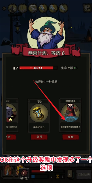 5、最后你就能够在升级的奖励当中选择唤醒种子了。