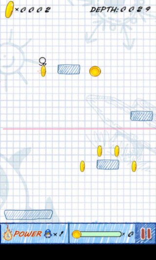 3、这款涂鸦游戏运行流畅,你需要利用重力感应倾斜手机,控制里面的男子向下坠落!收集更多的金币和其他的一些奖励进行升级!