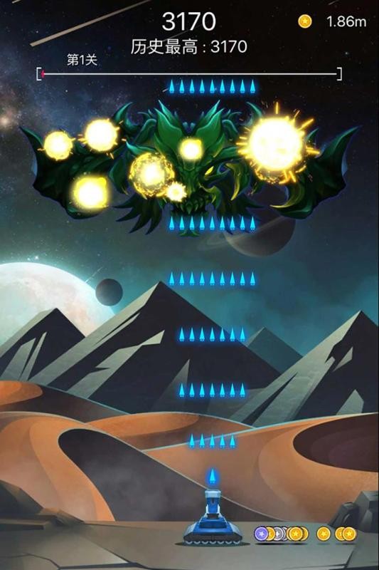 2、如果击败陨石可获得大量金币,金币可以升级你的飞船。