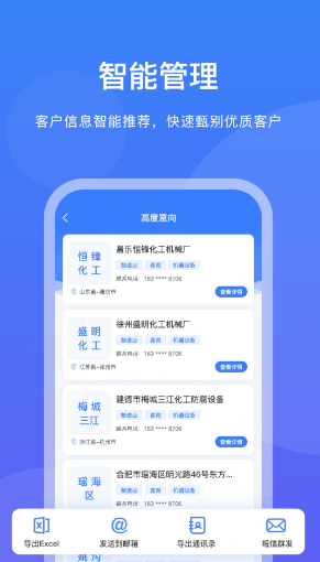 1、客户信息推荐智能管理快速识别优质客户,快速帮助用户体验并快速导出相应的文档和表单。