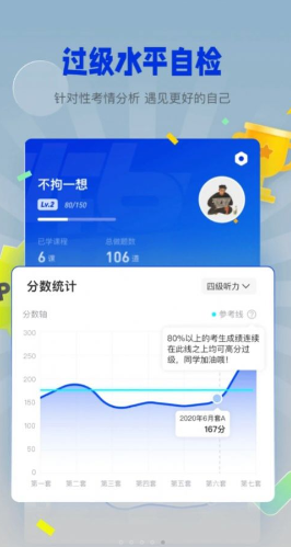 针对用户每次模考成绩的详情分析,让用户能够发现更好的自己,通过软件为你提供专业性的建议来进行提升自己,这就是《百词斩四六级》,这是一款针对用户四六级考试打造的学习软件,为你整合各色词汇,让你能记忆更为有效率,让你能够更好的通过考试,十分不错。