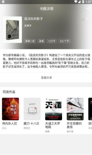 2、有将近一百万的小说来源,任何一本书都可以读得毫不遗漏。此外,还有非常好的小说实时更新;