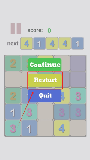 3、继续游戏:当完成一组数字块的放置后,点击“next”继续游戏,或点击“Restart”重新开始当前关卡。