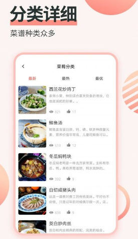 2、提供不同专业的菜谱信息,带来优质的菜谱学习方法,让您进行一次好的烹饪学习。