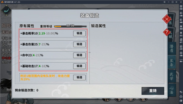 在装备锻造中,将剩余锻造次数用完,就会出现装备重铸页面。