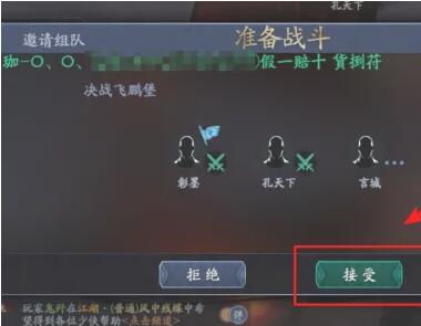 队伍组建完毕后,当准备战斗时会接受到邀请的指令,我们点击界面中的接受即可。