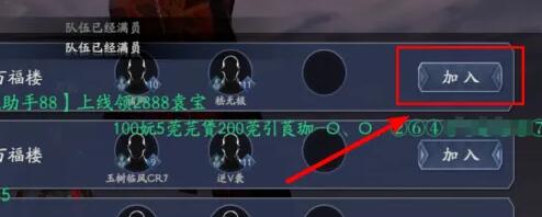 点击进入组队后可以看到当前的组队列表。你如果想加入某个队伍,点击后方的加入。