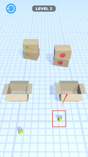 2、移动物品到正确位置:将目标物品拖动到正确的位置,如将瓶子放置到桶旁边。