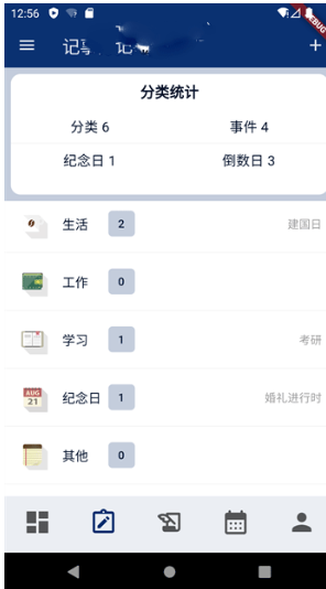 1、灯塔时刻支持分类统计记录内容管理,可以对生活、工作、学习纪念日等进行详细、方便的管理相应的事件详情。