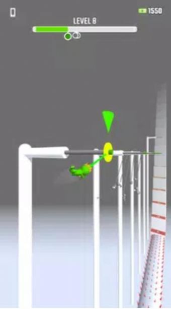 1、关卡设置包括一个立体图像,玩家使用钩子向前移动以避免障碍。