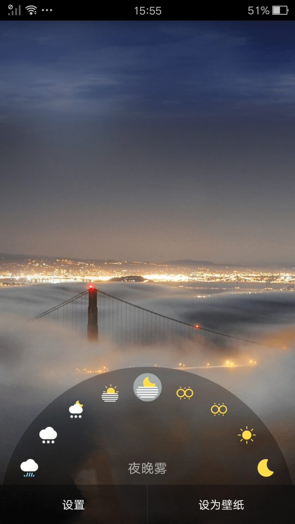 2、优美壁纸APP支持查看天气信息,了解不同天气的状态,根据天气情况更换壁纸。