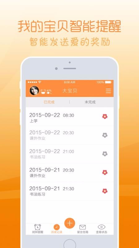 2、有小红花红色图标标记,每一个已经完成的闹铃历史记录标签上都有小红花标记适合你体验。