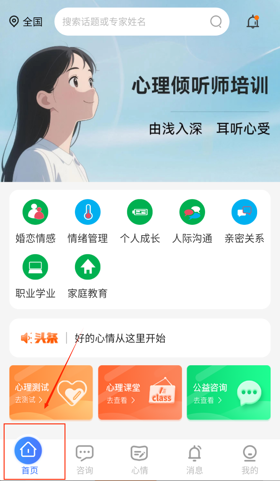 3、精心设计20 个专题心理课程,包含焦虑缓解、人际关系等主题,帮助用户系统学习心理健康知识。