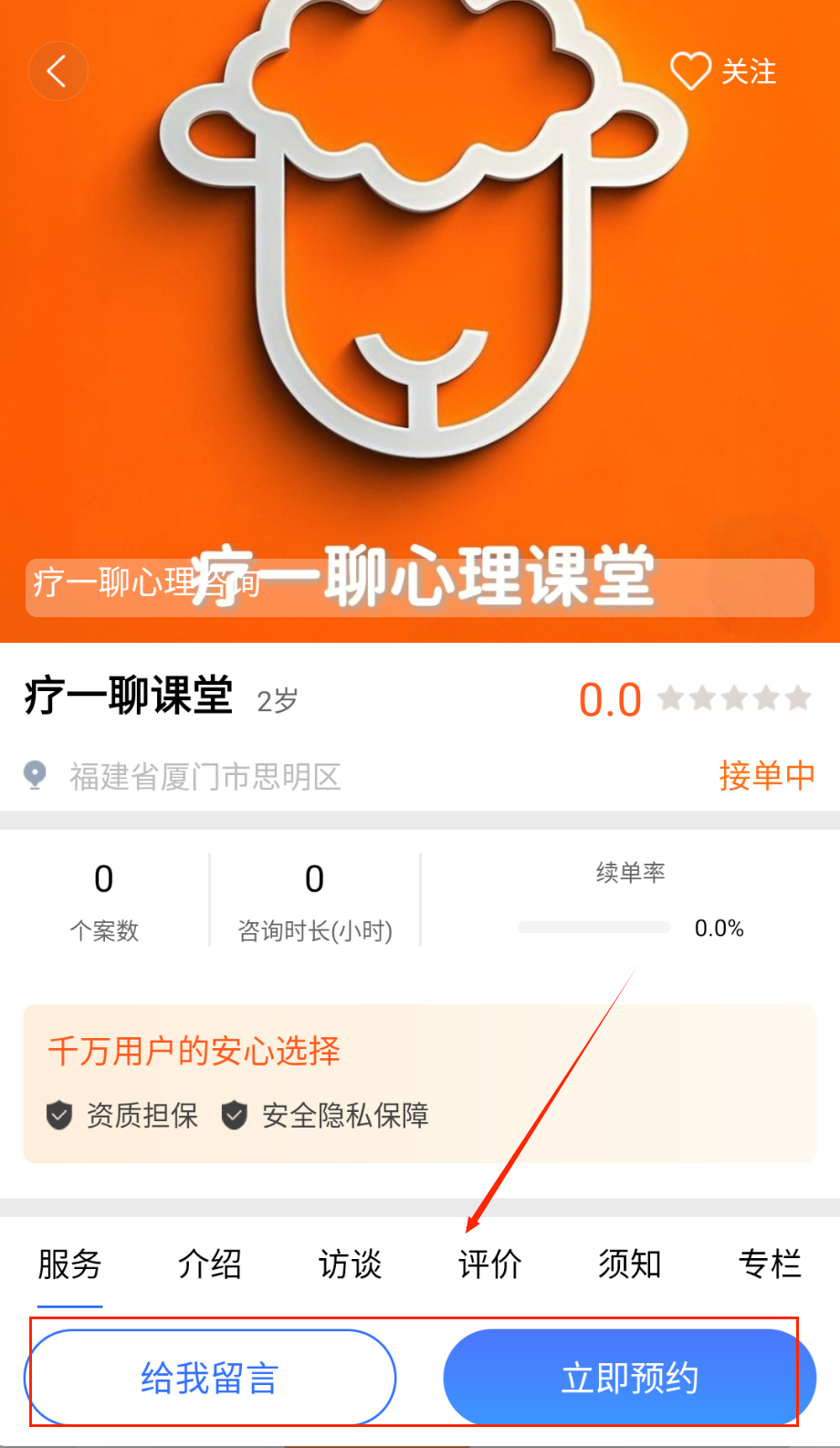 2、浏览咨询师资料查看资质证书和擅长领域,参考用户评价选择适合的咨询专家预约服务。