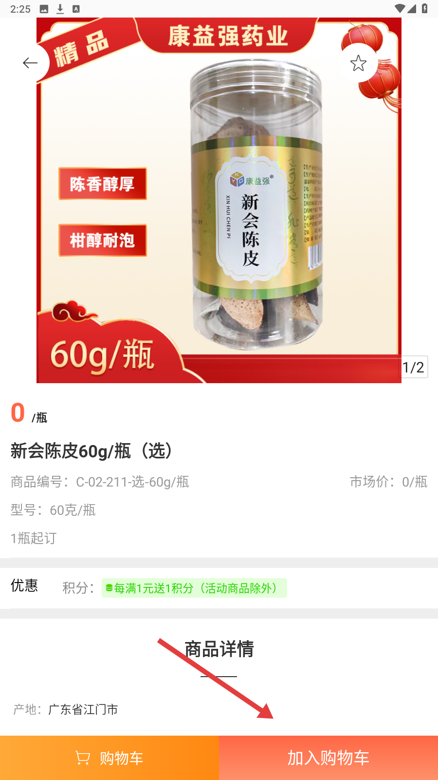 3、进入商品详情页,确认规格等信息后,点击【加入购物车】。