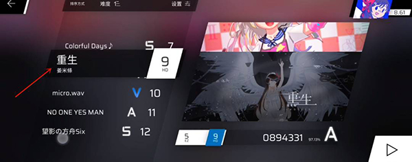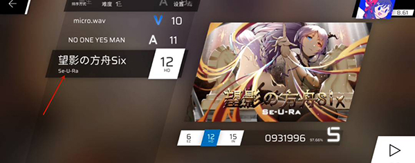 4.然后再选择望影の方舟six这首歌,也是任意难度;