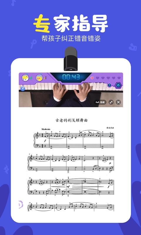 3、更便捷的钢琴学习模式,专业老师视频纠错,让您的孩子获得更好的学习效果。
