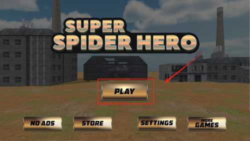 2、进入主菜单:在“SUPER SPIDERHERO”主界面,点击“PLAY”按钮开始游戏。