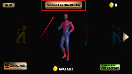 3、选择角色:在“SELECTCHARACTER”页面,点击喜欢的角色头像即可使用或观看视频免费解锁。