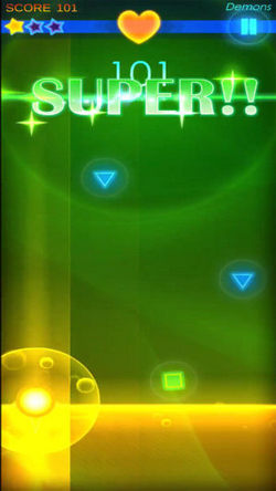 2、当节奏线上的立方体掉落时,将出现各种彩色爆炸效果满足体验。