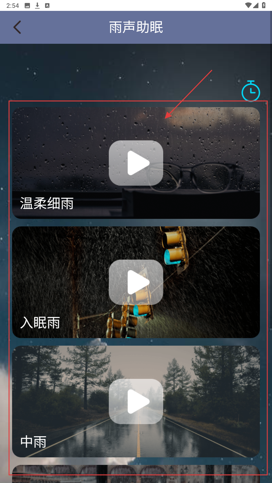 4、在雨声助眠列表,选喜欢的雨声类型,如【温柔细雨】,播放助眠。