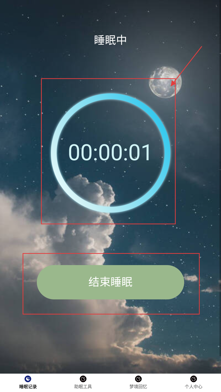 2、睡眠结束后,点【结束睡眠】,停止计时,完成本次睡眠记录。