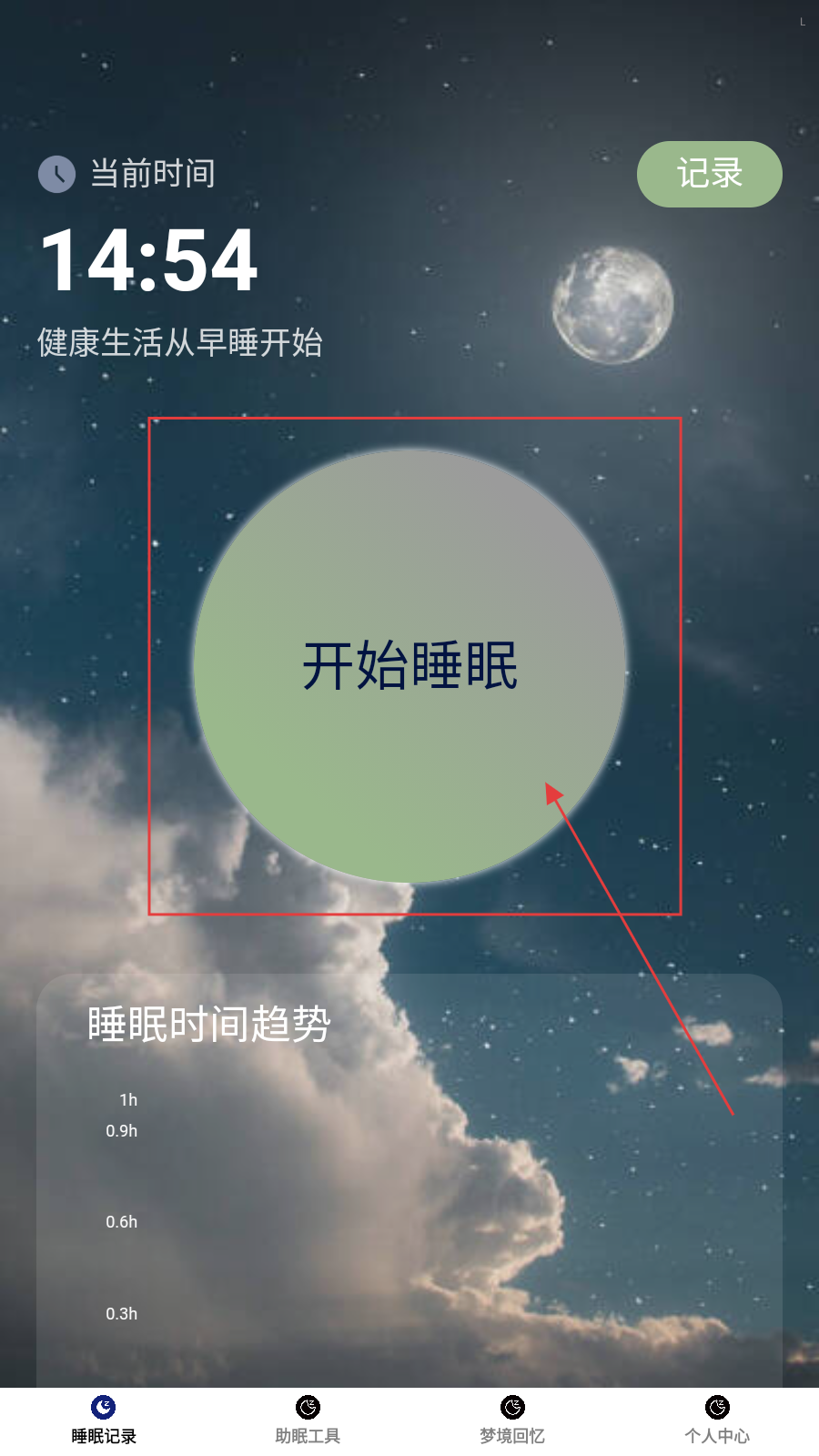 1、在睡眠记录页,点击【开始睡眠】,启动睡眠计时,记录睡眠时段。