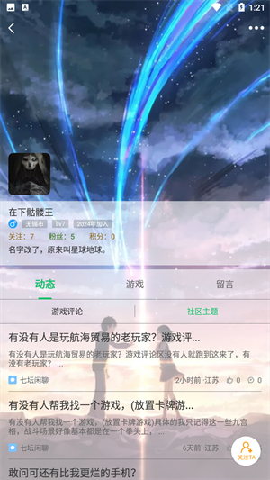 3、进入用户页面,点击“关注TA”即可。