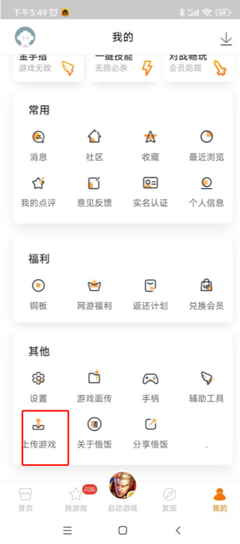 1、进入悟饭游戏厅主界面,点击下方的启动游戏。