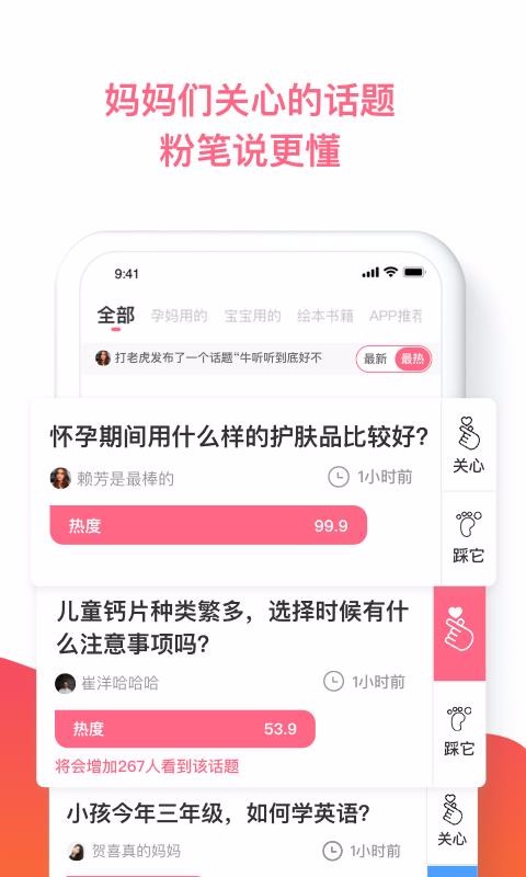 3、拥有两种个性化的话题表达方式,设置不同的态度表达图标,让妈妈们踩上去关心,学习的方式支持操作。