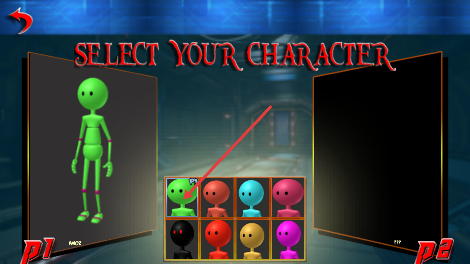1、在【SELECT-YOUR-CHARACTER】界面选绿色角色,确认后进入对战,优先熟悉角色操作机制开启格斗。