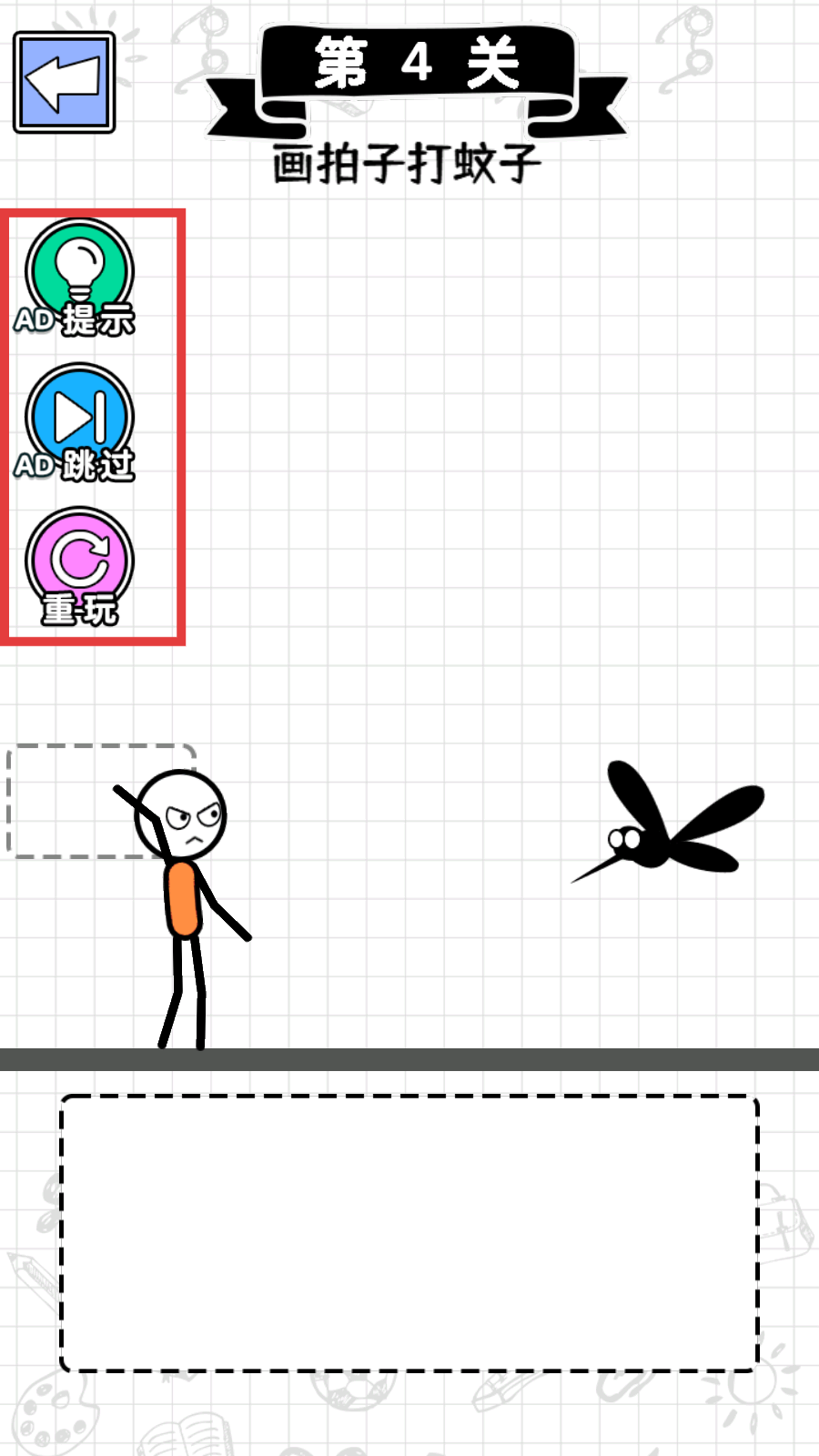 2、进入第4关后,若卡关可点【AD提示】获通关思路,或用【AD跳过】直接过,也能【重玩】重试。