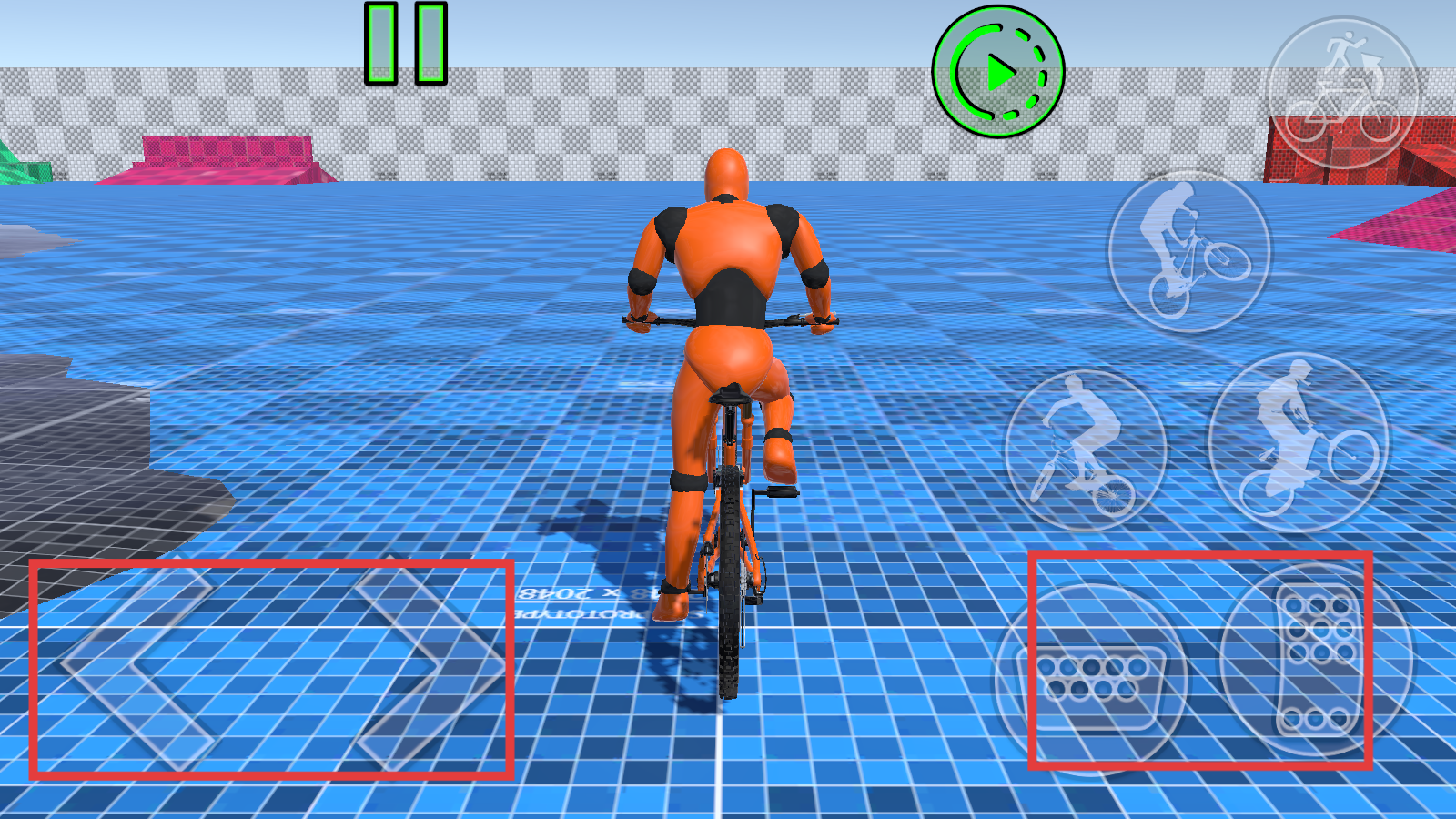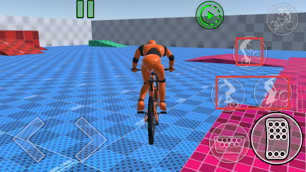 3、遇彩色坡道时,点击右侧【特技按钮】触发动作,借助地形完成高难度骑行技巧。