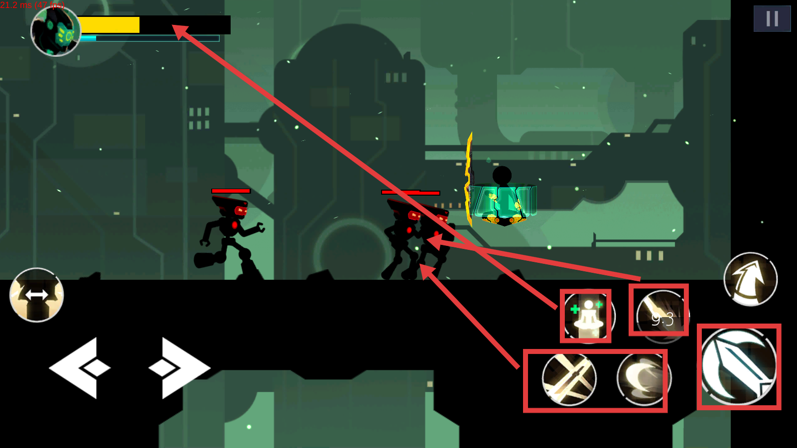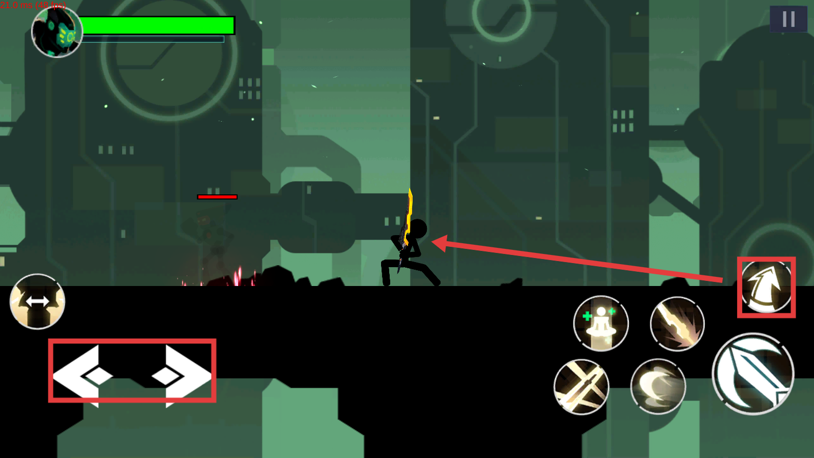 2、战斗时左【←→】键移动角色,右【↑】键跳跃,持剑近战输出,灵活走位躲避敌人攻击。