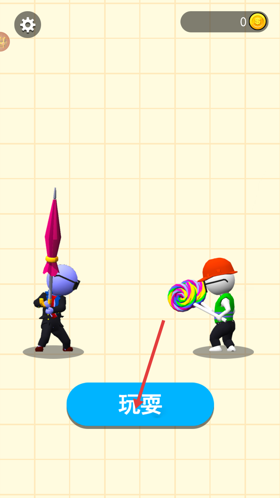 1、主界面点击【玩耍】,进入武器绘制场景,准备自定义战斗道具。