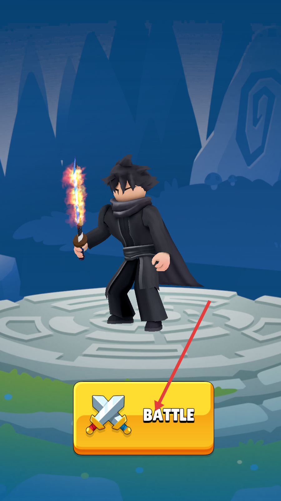1、点击【BATTLE】按钮,操控黑衣持剑角色进入战斗场景,开启对战流程。