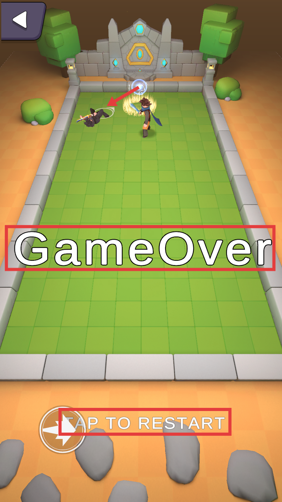 4、若战斗失败显示【GameOver】,点击【TAPTORESTART】重新挑战,调整战术提升对战胜率。