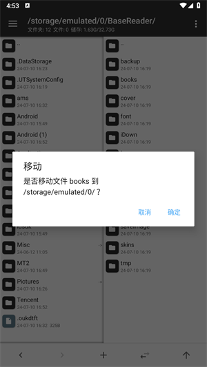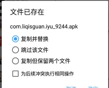3、接着选中左边栏目中要替换的文件,长按后选择复制或者移动,就可以快速的将文件传送替换到右边栏目中。简单便捷。